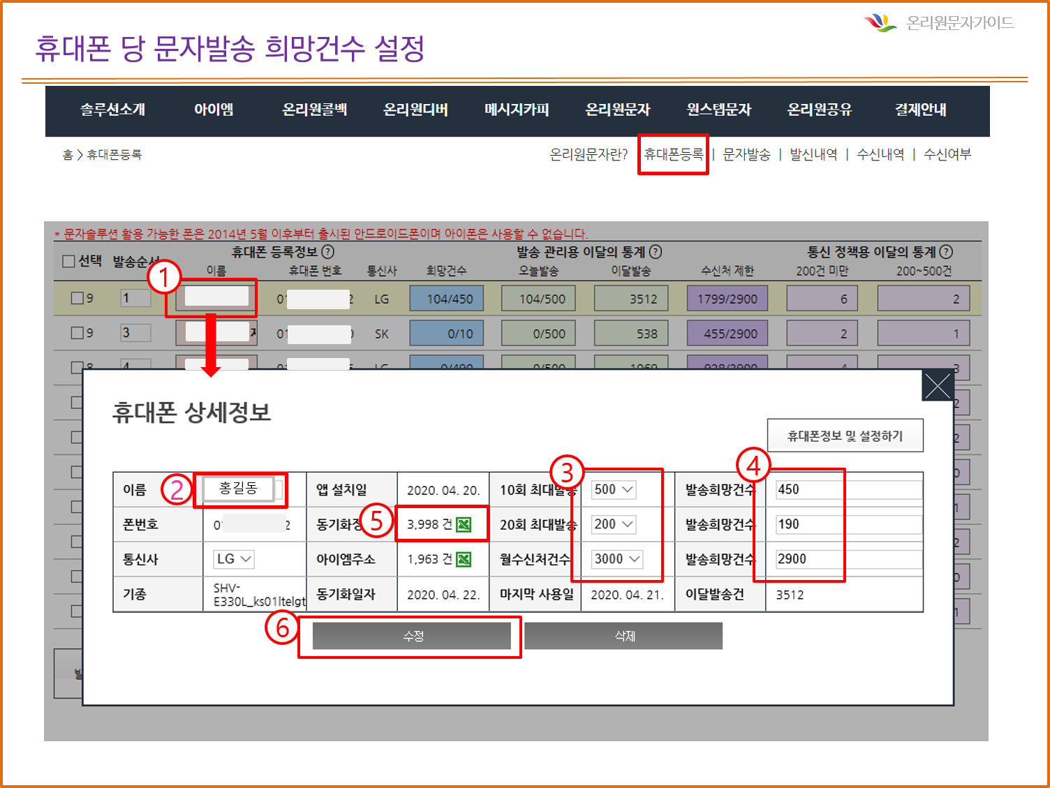 문자 [온리원문자] 발송건수 및 수신처수 직접 설정 2020-04-22 45785